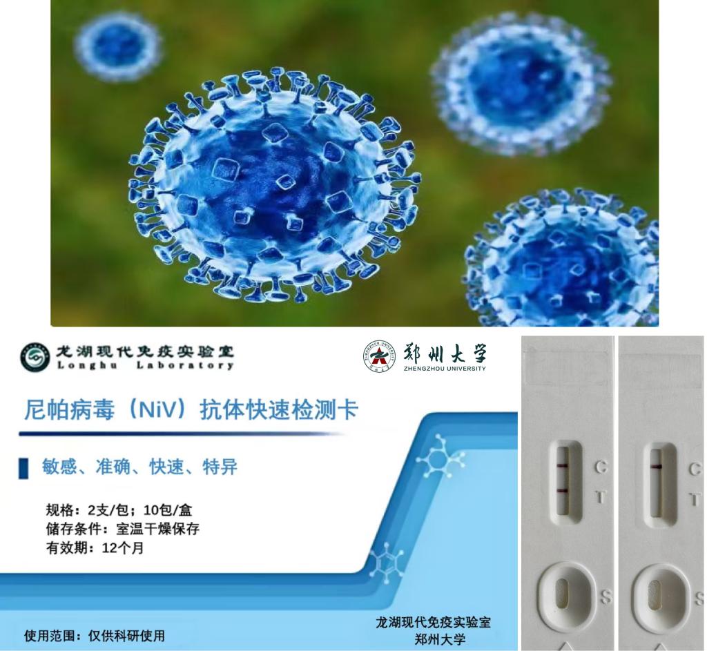 当前,尼帕病毒(Nipah virus, NiV)在印度等地持续爆发,已成为威胁区域乃至全球公共卫生安全的重大风险。面对这一严峻挑战,在张改平院士带领指导下,龙湖现代免疫实验室联合郑州大学王爱萍教授研究团队快速响应、协同攻关,在尼帕病毒高效检测技术与疫苗研发方面取得突破性进展。团队已成功研制出尼帕病毒核酸检测试剂盒(PCR-荧光探针法)与尼帕病毒抗体检测试纸(胶体金免疫层析法),构建形成“核酸早期诊断+抗体血清学验...