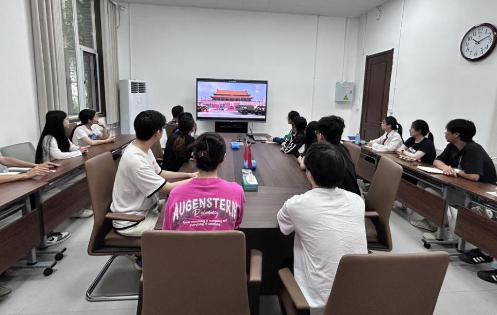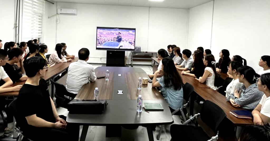 实验室各部门员工及全体师生在党建活动室及会议室分别集中观看纪念大会活动现场直播,认真聆听习近平总书记在纪念中国人民抗日战争暨世界反法西斯战争胜利80周年大会上的讲话,共同见证意义非凡的历史时刻,感受伟大祖国的繁荣强大。