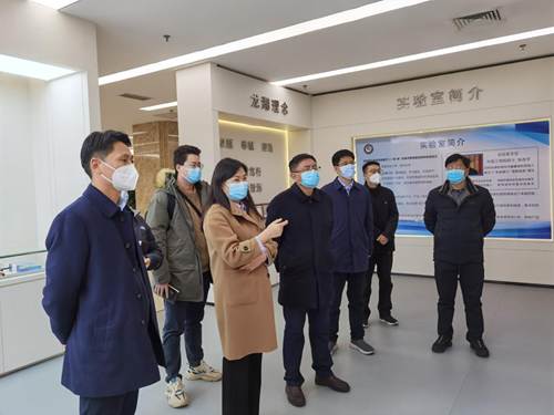 林嵬一行首先参观了龙湖现代免疫实验室展厅,实验室副主任王爱萍介绍了龙湖现代免疫实验室的定位、科研主攻方向、人才引进和科研团队组建、科研成果创新、开放合作等方面的情况。随后召开了调研座谈会,就实验室“如何推进凝练重大课题、实现1+1>2,甚至1+1>3”、科技创新和知识产权保护等方面进行了广泛交流。