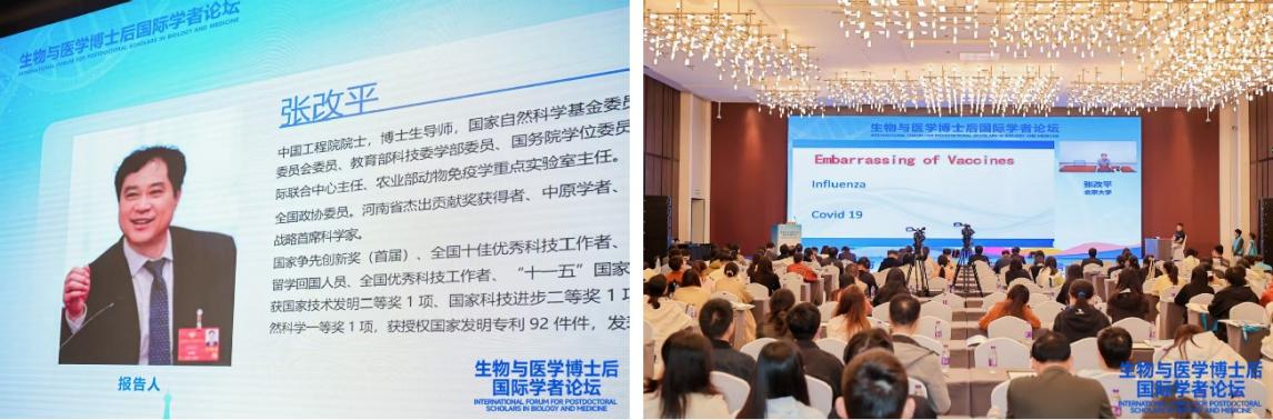 实验室首席科学家张改平院士受邀做了“FutureVaccine”的主旨演讲。报告开始,张改平院士以“为什么”、“什么是”、“怎么实现”为逻辑主线,深入剖析了超级疫苗的发展历程,他指出,当前疫苗面临保护效率有限与保护谱系狭窄两大世界性难题。开创性地提出“免疫潜力”、“超级疫苗”理论,基于这一理论,张院士团队自主研发了多种创新的结构抗原技术平台。张院士重点介绍了利用水稻胚乳表达系统成功制备的高效重组抗原Osr2HN。实验数据表明,该疫苗能激发机体产生更高效价的抗体,在动物攻毒试验中可实现完全保护,在安全性、有效性及生产成本上均展现出显著优势,为实现团队研究所追求的“安全、微量、精准、高效”的疫苗理想境界提供了有力实证。