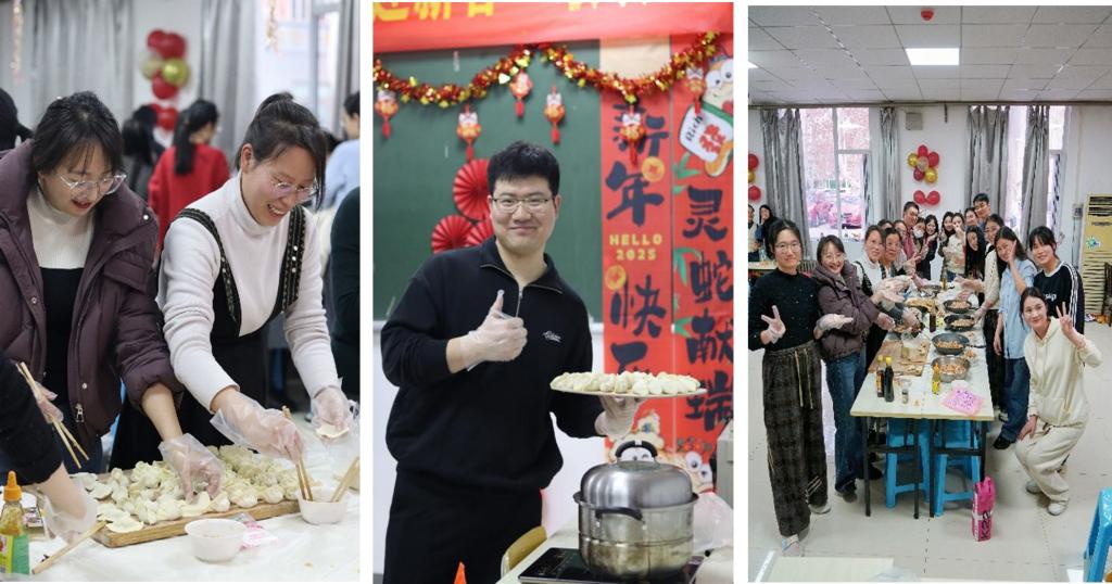 特别值得一提的是,本次联欢会还特别设置了“包饺子”环节,在包饺子的过程中,师生全员参与,在和面、擀皮、包馅的过程中,师生之间、同学之间畅所欲言,打破了日常科研中的严肃氛围,不同地域的文化在交流中碰撞、融合,促进了文化的多元化发展。通过这一活动,研究生们得以亲身参与、体验传统文化的魅力,增强了对传统文化的认同感与传承意识。大家在合作中增进默契,在欢声笑语中加深感情,有效缓解了科研压力,增强了团队的凝聚力与向心力。